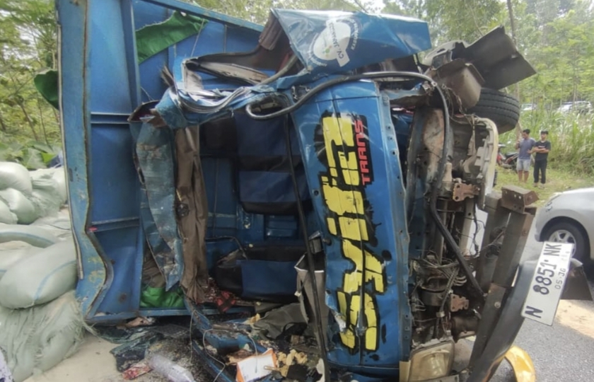 Naas Jelang Hari Raya, Truk Diduga Oleng di Tikungan Tajam Pantura Jambewungu Bondowoso Hantam Truk Kuning hingga Lalu Lintas Tersendat