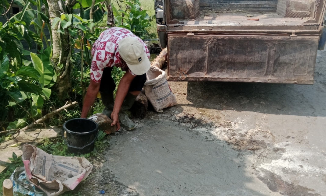 Warga RT 07 Desa Sumber Tengah Bondowoso Tambal Sulam Jalan Berlubang Demi Keselamatan Pengendara